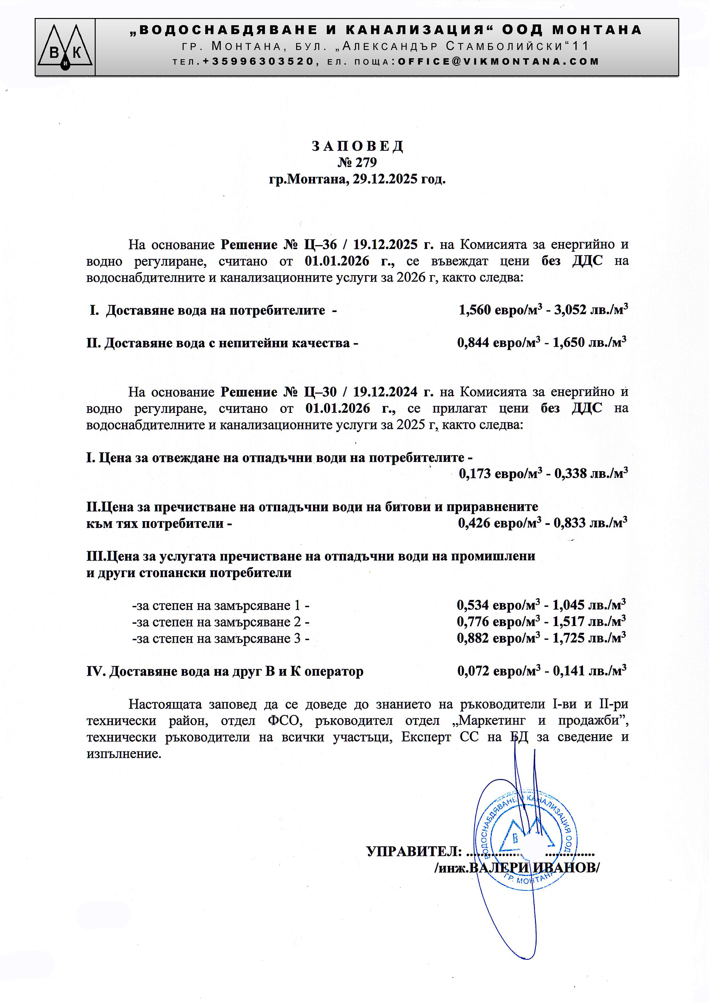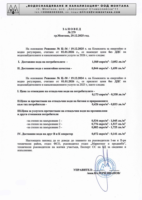 “Водоснабдяване и канализация” ООД – Монтана е стратегическа фирма, която включва в дейността си изключително важни направления като:
